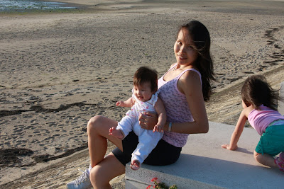 It was so unusual that Guojun got to come home early today, so we took this rare opportunity on a weekday to cycle with the babies to the nearby oyster farm. The weather was just awesome too...... so perfect that Nyx and I decided to practice abit of yoga and enjoy the fresh air.